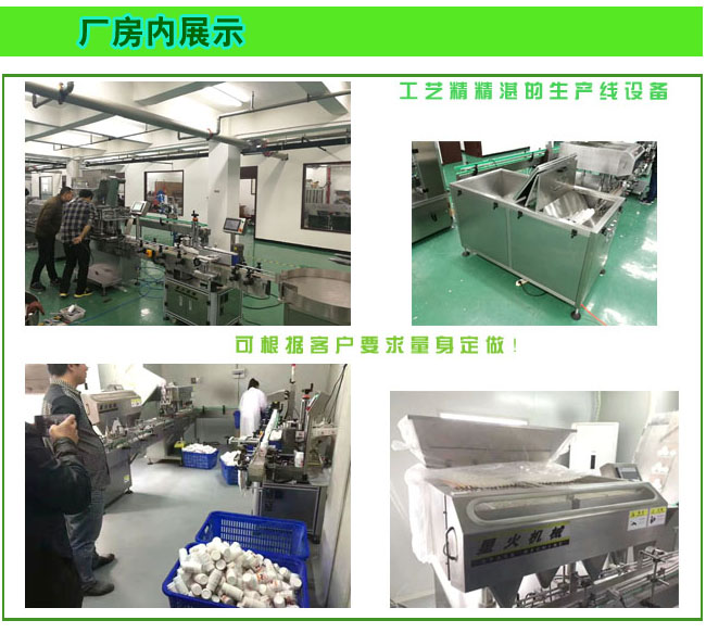 适用于制药、食品、日化等行业的片剂、丸剂、胶囊及其他异形片的计数灌装、塞纸、旋盖、封口、贴标等包装全过程。